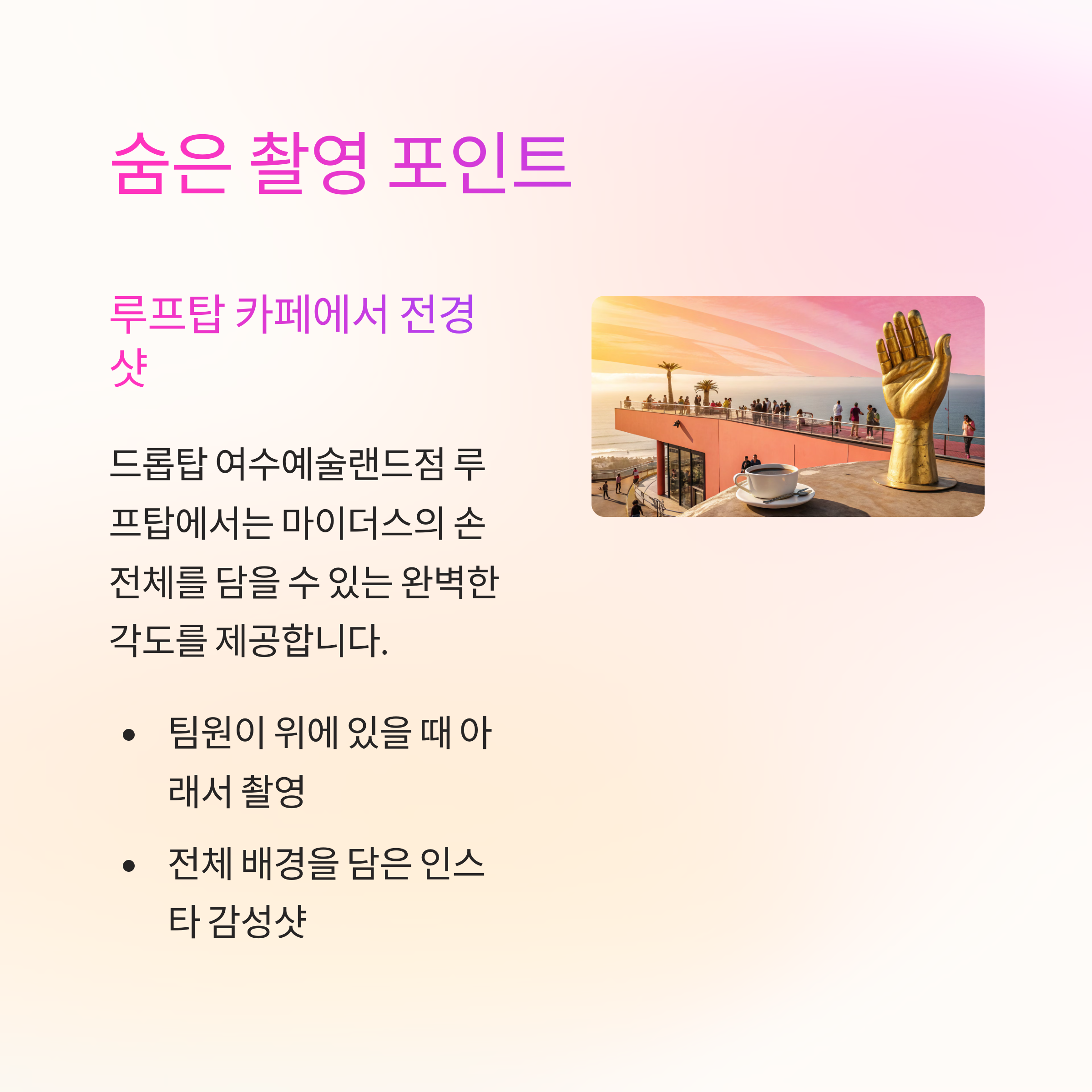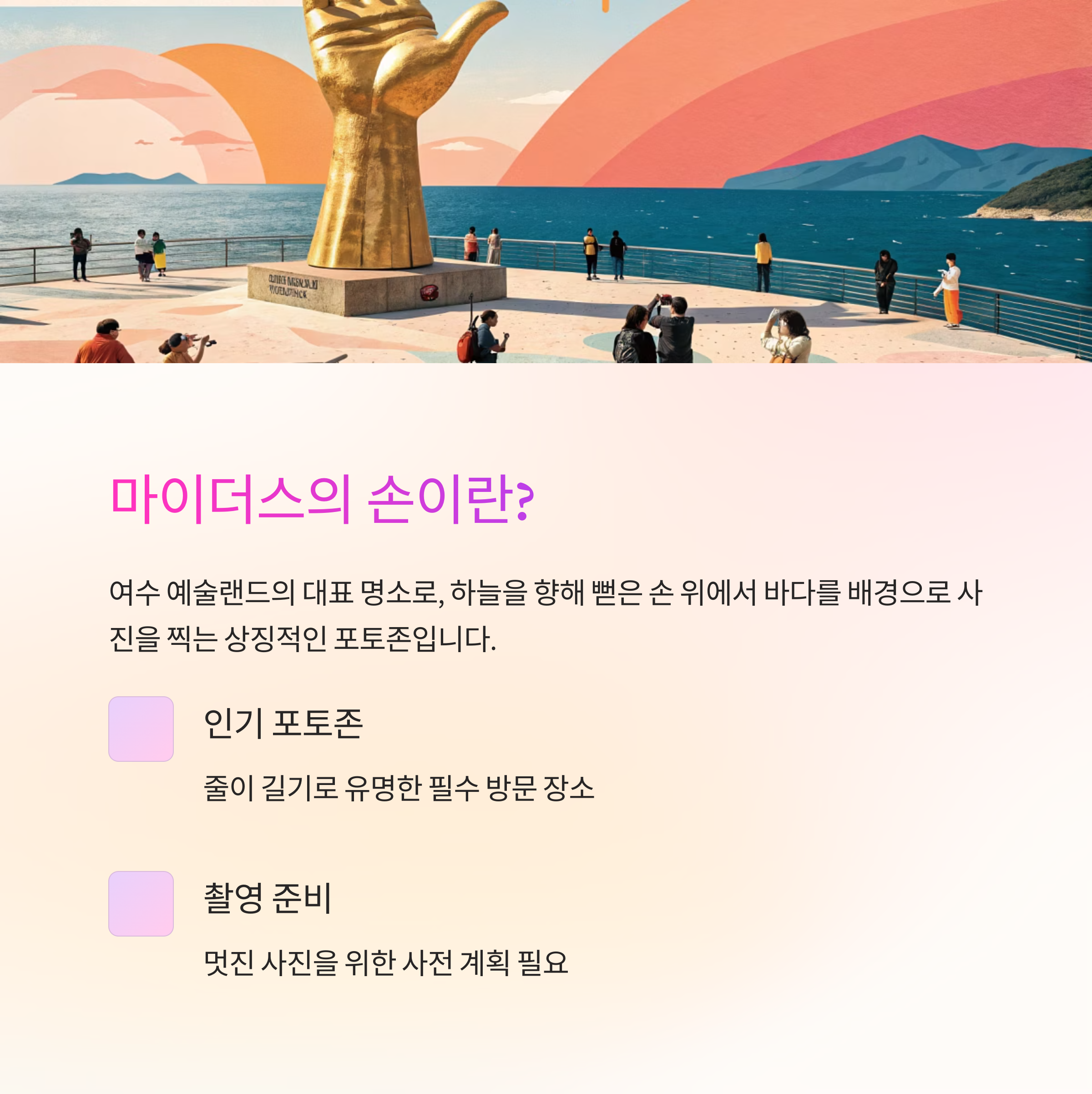 ✔️어떻게 해야 여수 마이더스의 손에서 최고의 사진을 남길 수 있을까?
