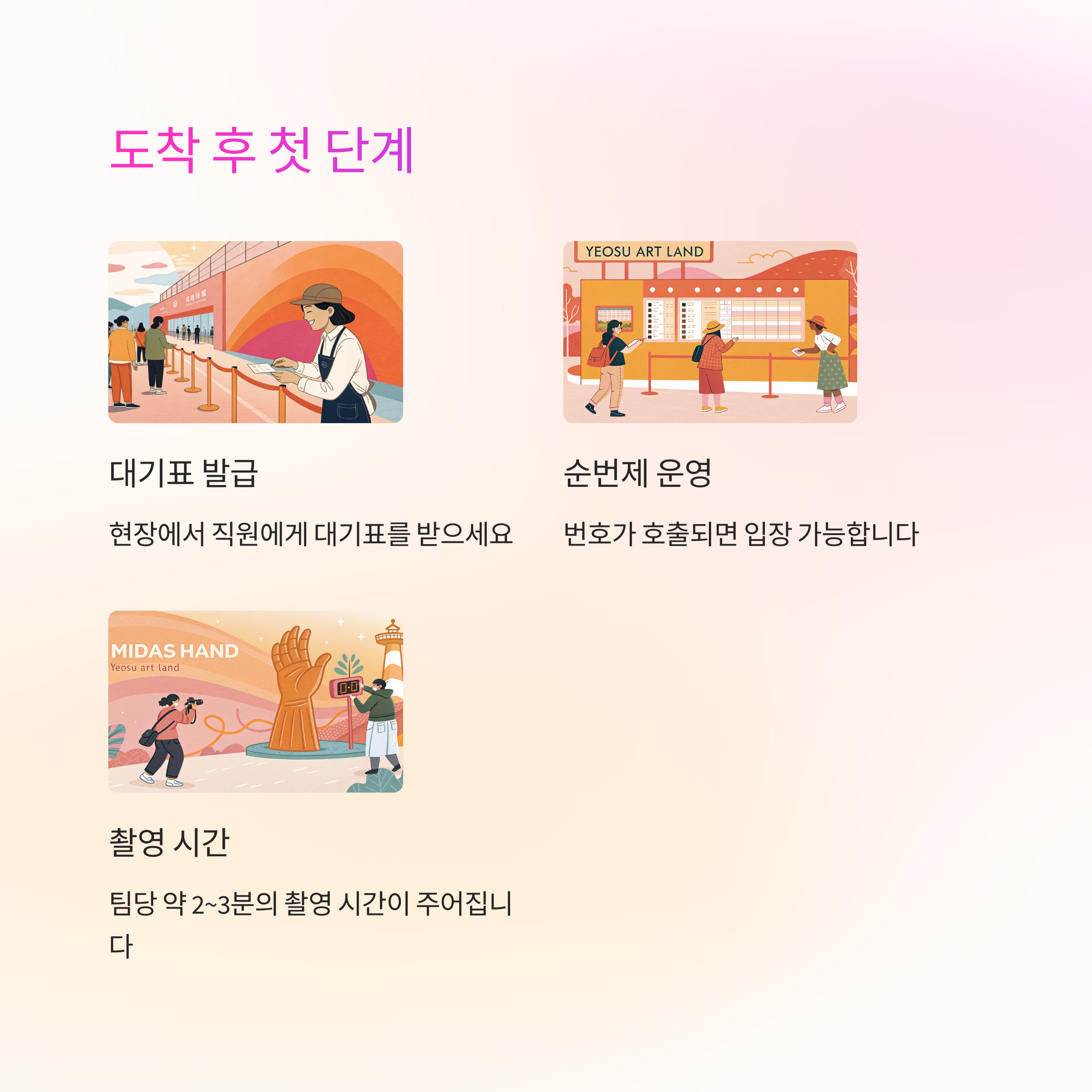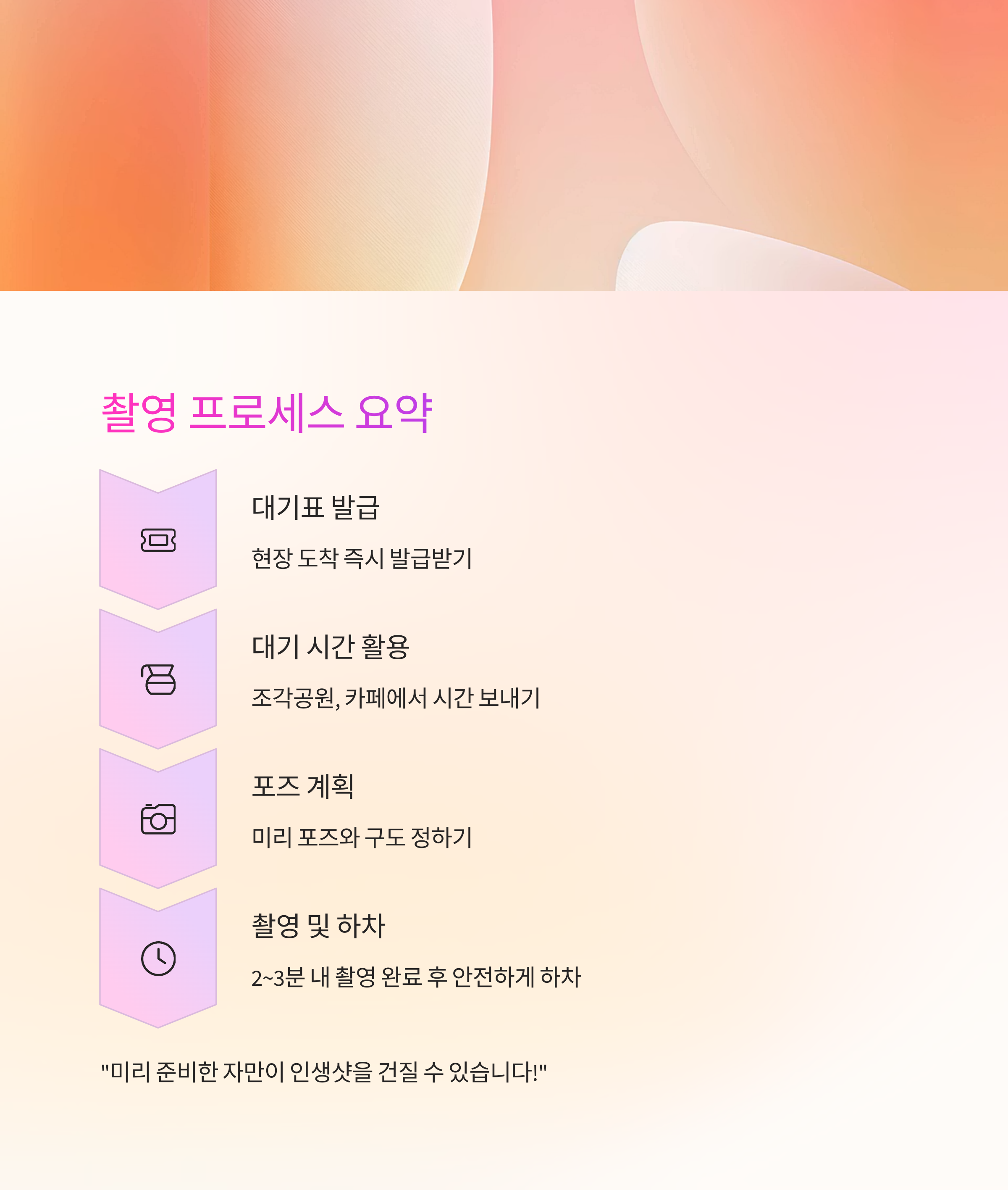 | 4단계 | 2~3분 촬영, 순서 도착 시 바로 진행 |