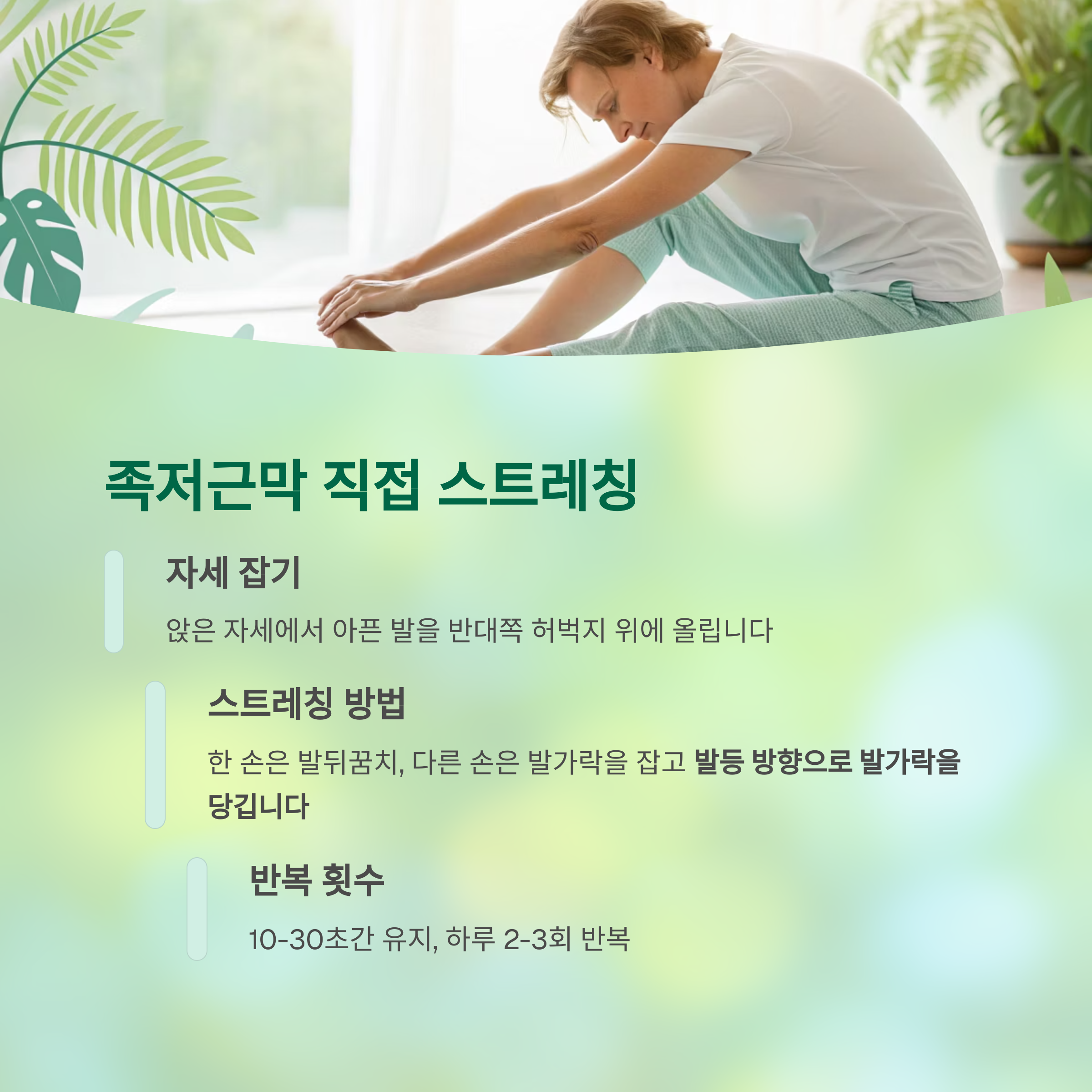➡️족저근막염 증상 완화를 위한 스트레칭은 어떻게 해야 하나요?