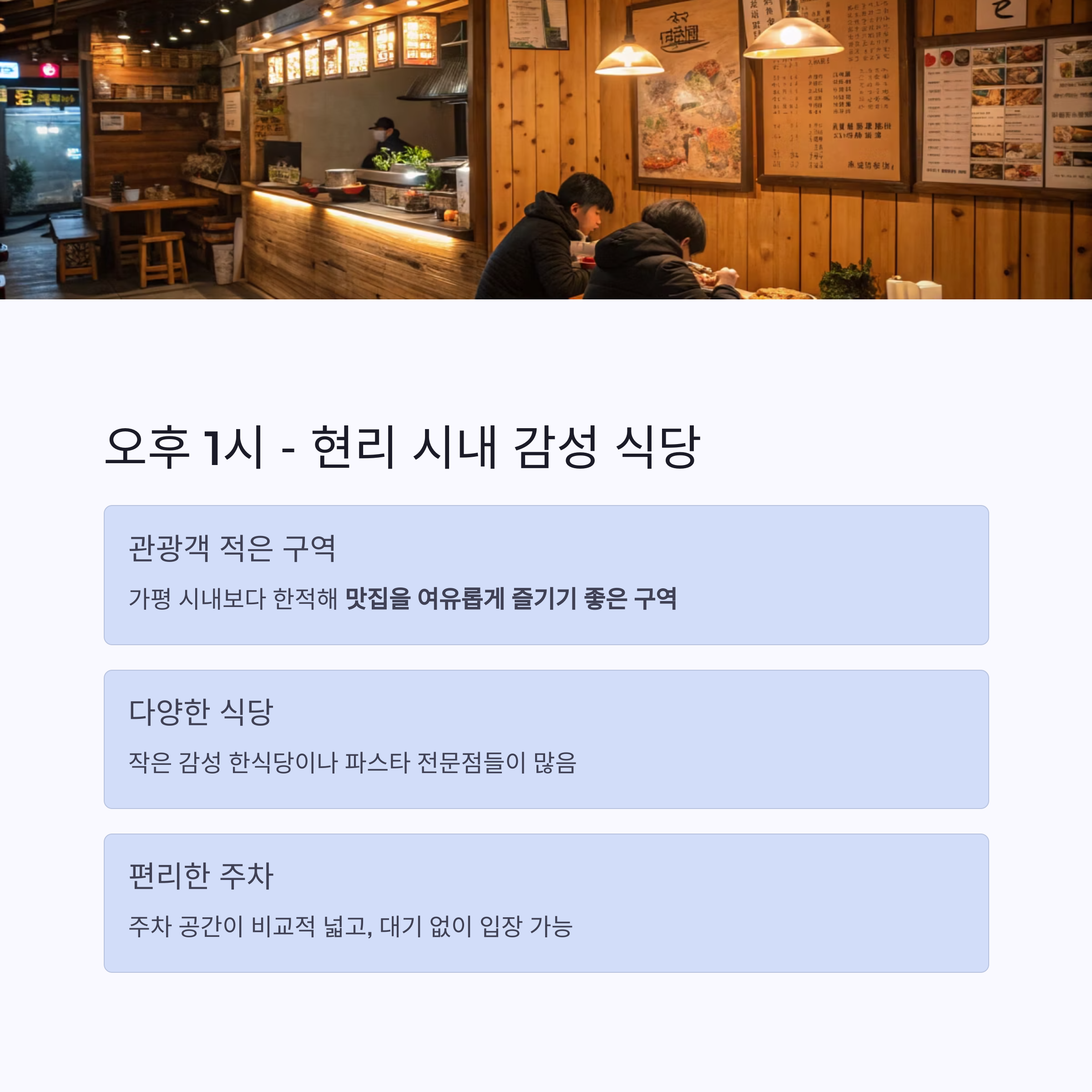 오후 1시 – ‘현리 시내’ 감성 식당에서 점심 식사