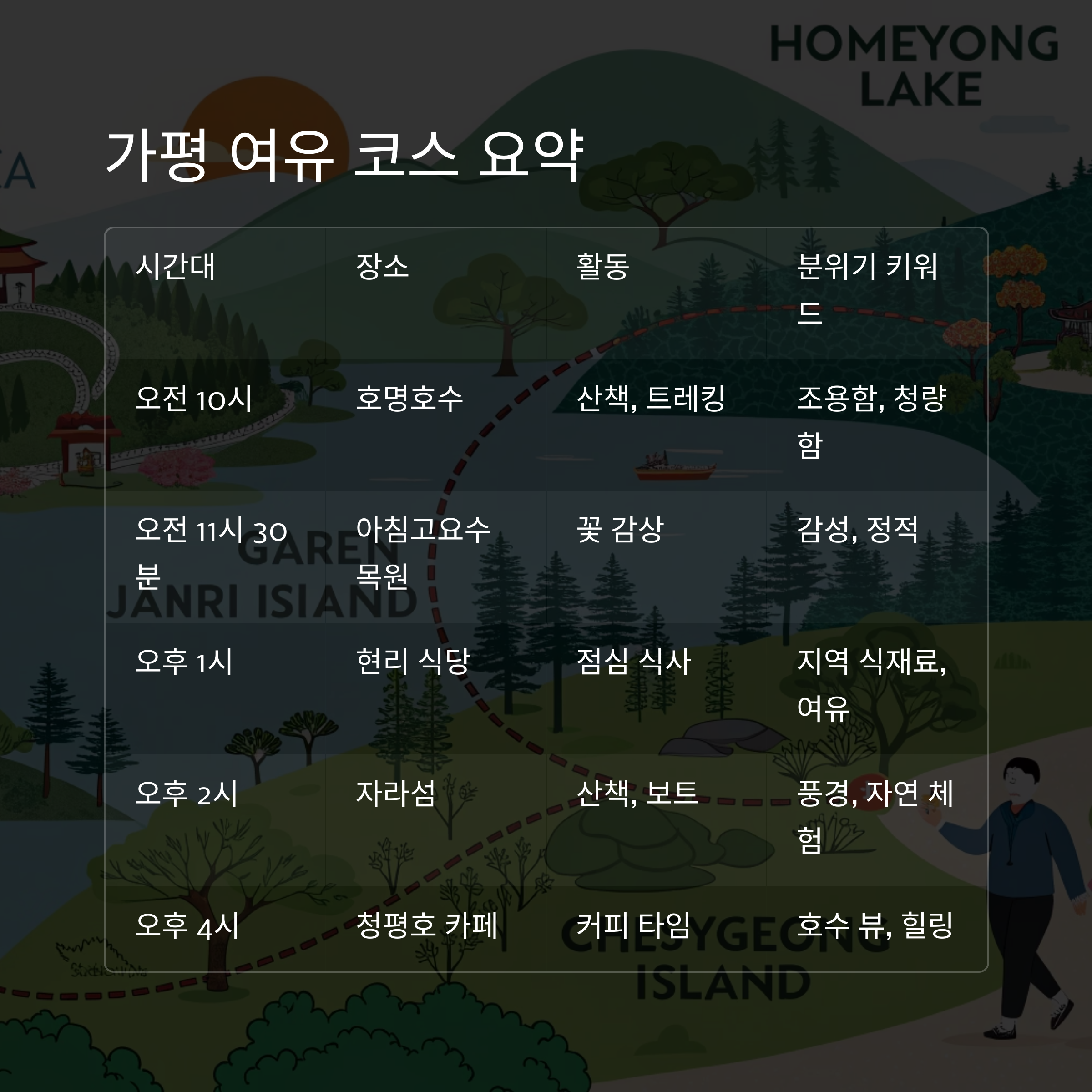 가평 여유 코스 요약표